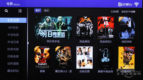 我们打开一些热门电影、电视剧观看,如果网速给力的话,播放时非常流畅,画质不错,通过遥控器可以拖动快进、后腿,随心所欲。